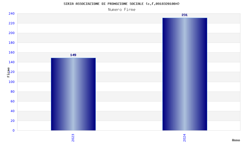 | Anno | Firme | Importi | Media | Naz. | Reg. | Prov. | Comu. |