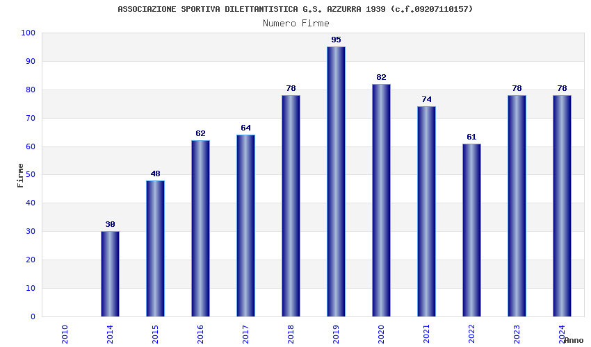 | Anno | Firme | Importi | Media | Naz. | Reg. | Prov. | Comu. |