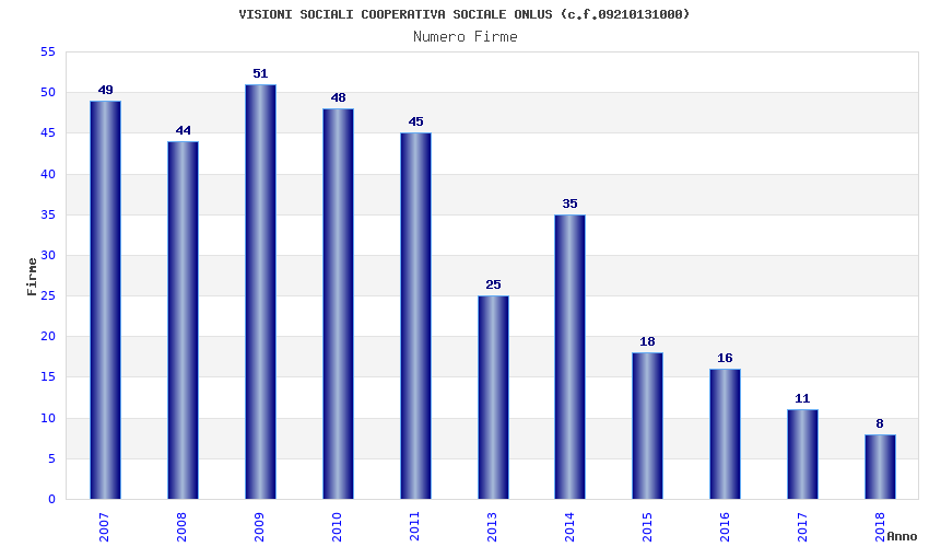 | Anno | Firme | Importi | Media | Naz. | Reg. | Prov. | Comu. |