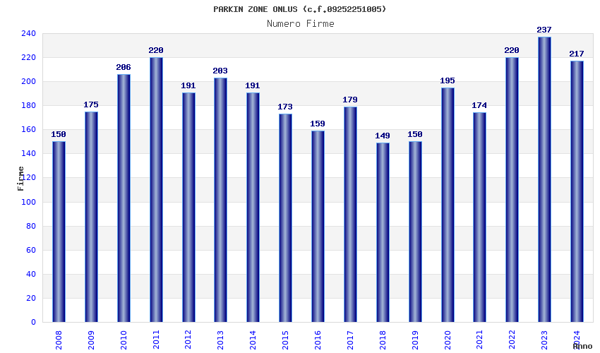 | Anno | Firme | Importi | Media | Naz. | Reg. | Prov. | Comu. |
