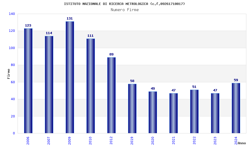 | Anno | Firme | Importi | Media | Naz. | Reg. | Prov. | Comu. |