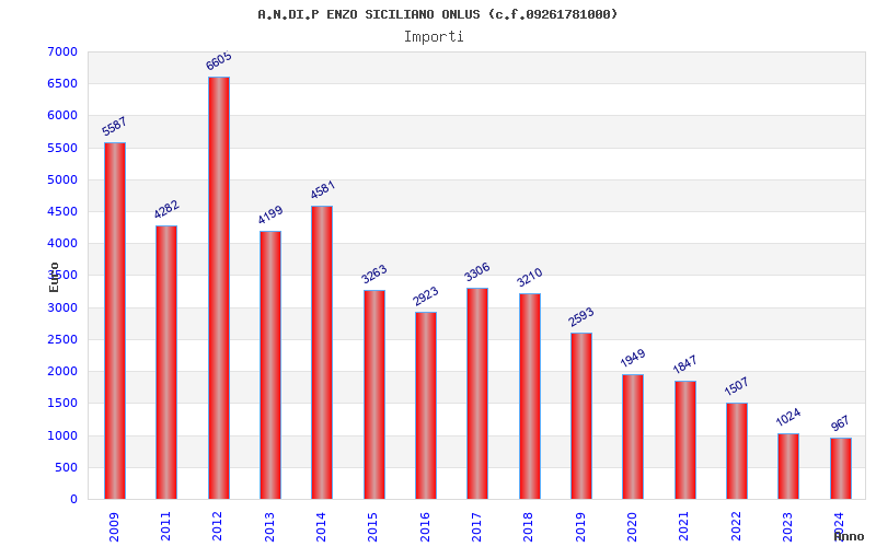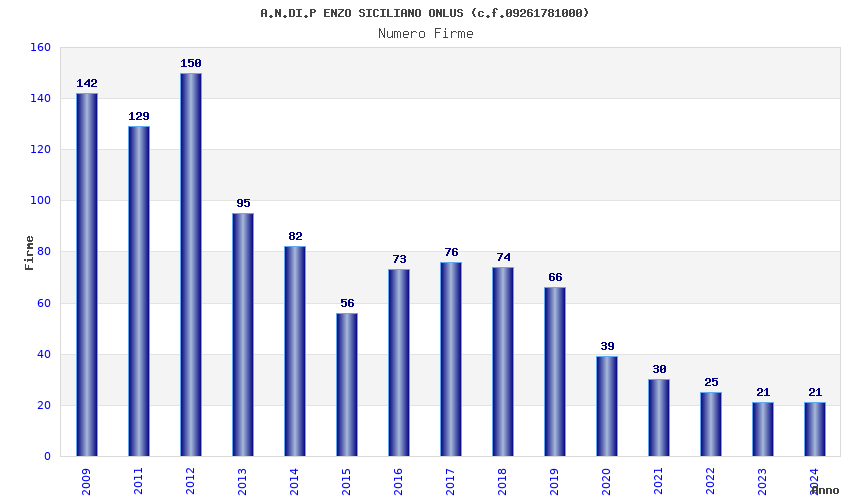 | Anno | Firme | Importi | Media | Naz. | Reg. | Prov. | Comu. |
