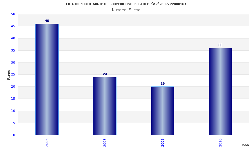 | Anno | Firme | Importi | Media | Naz. | Reg. | Prov. | Comu. |