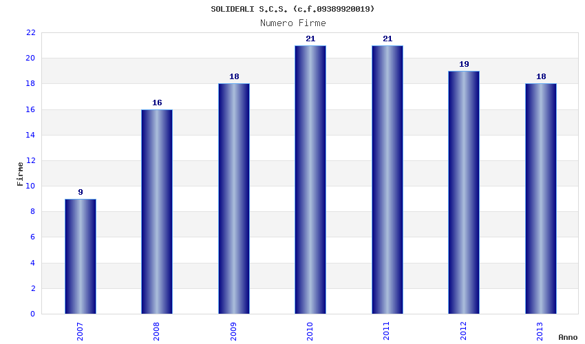 | Anno | Firme | Importi | Media | Naz. | Reg. | Prov. | Comu. |