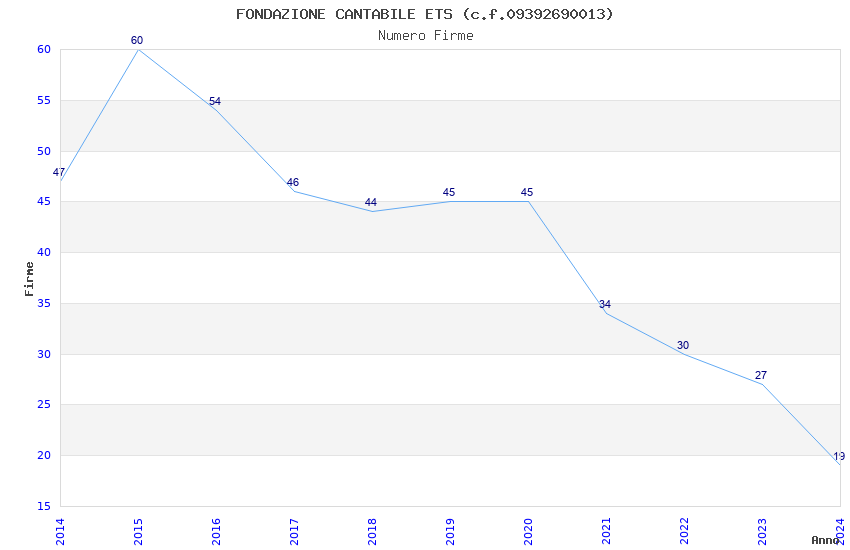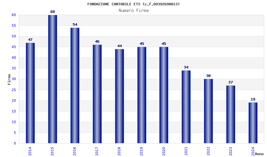 | Anno | Firme | Importi | Media | Naz. | Reg. | Prov. | Comu. |