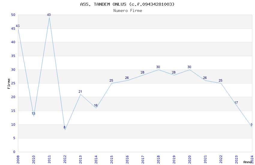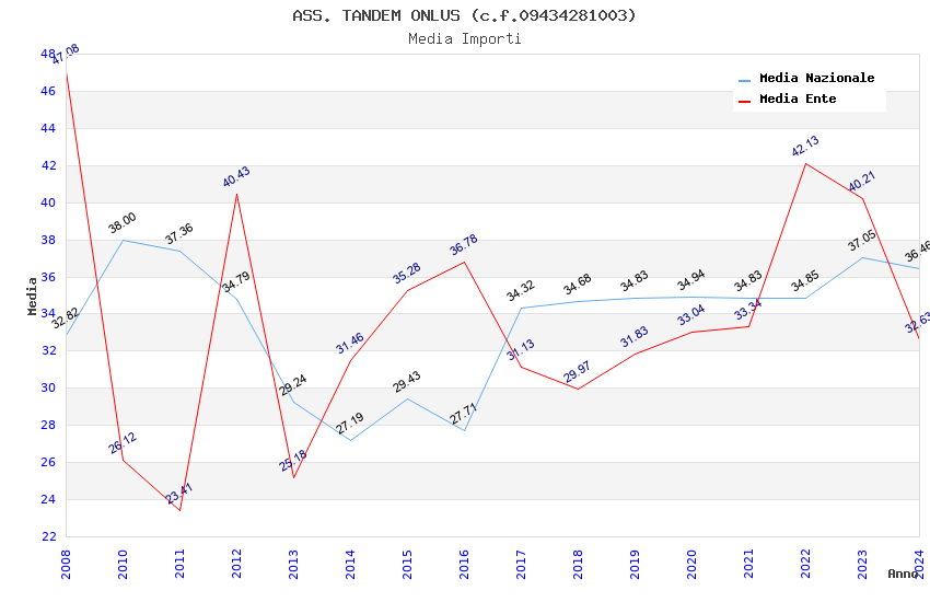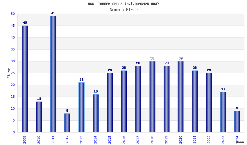 | Anno | Firme | Importi | Media | Naz. | Reg. | Prov. | Comu. |