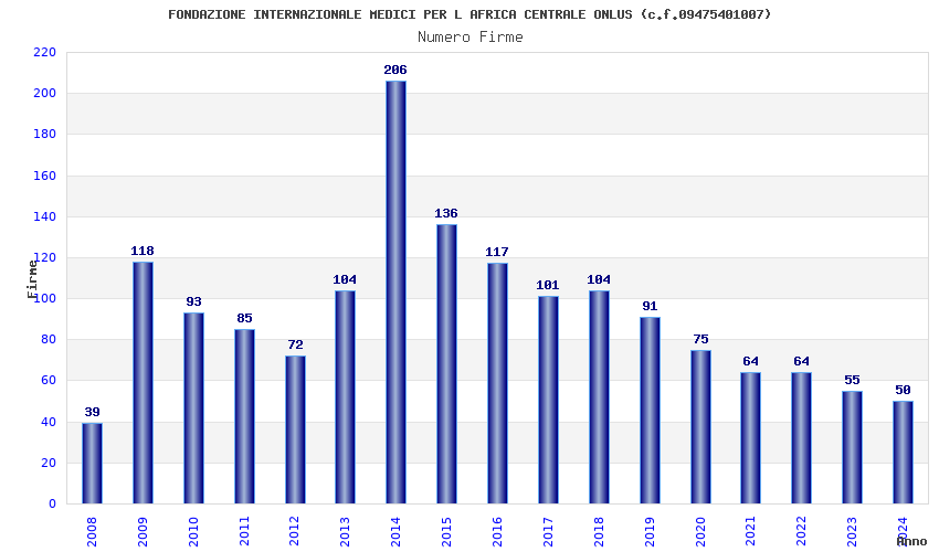 | Anno | Firme | Importi | Media | Naz. | Reg. | Prov. | Comu. |