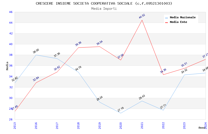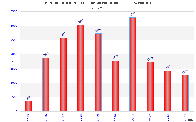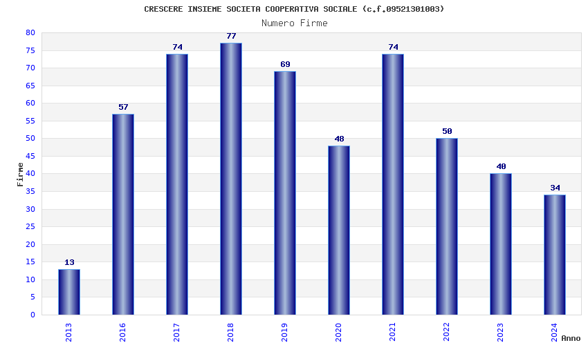 | Anno | Firme | Importi | Media | Naz. | Reg. | Prov. | Comu. |