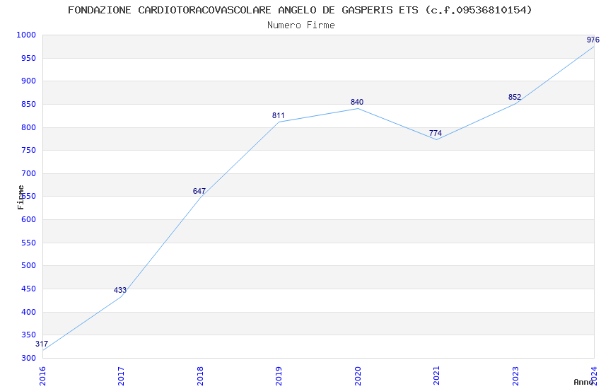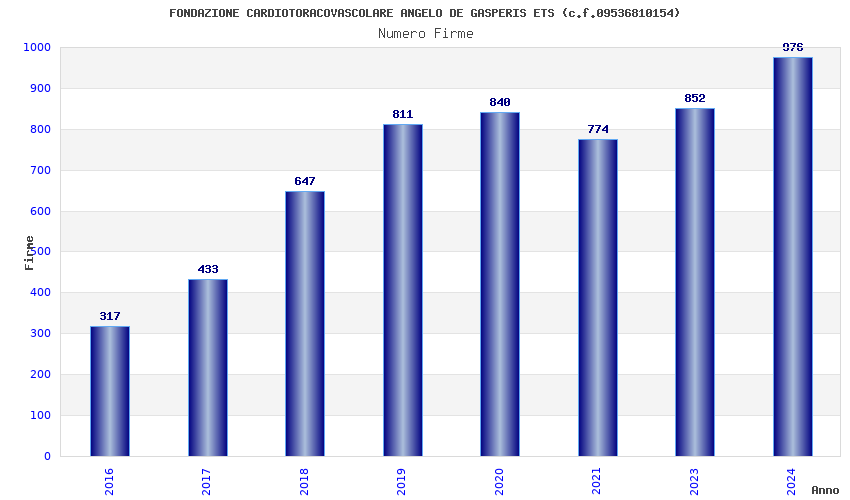 | Anno | Firme | Importi | Media | Naz. | Reg. | Prov. | Comu. |