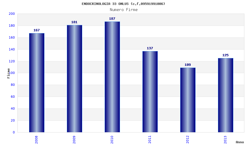 | Anno | Firme | Importi | Media | Naz. | Reg. | Prov. | Comu. |