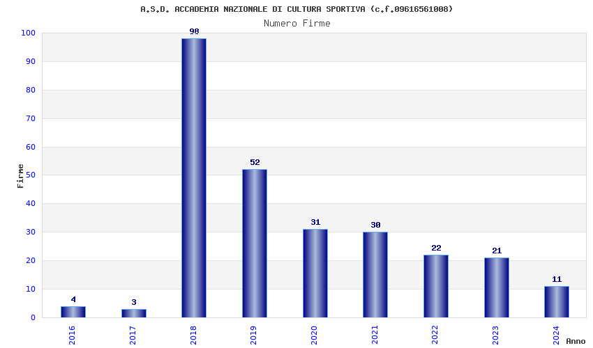 | Anno | Firme | Importi | Media | Naz. | Reg. | Prov. | Comu. |