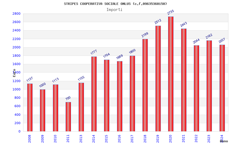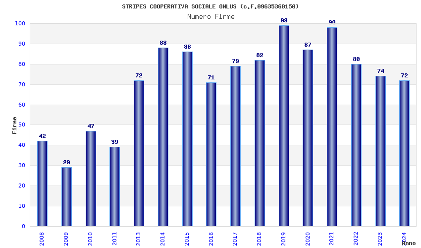 | Anno | Firme | Importi | Media | Naz. | Reg. | Prov. | Comu. |