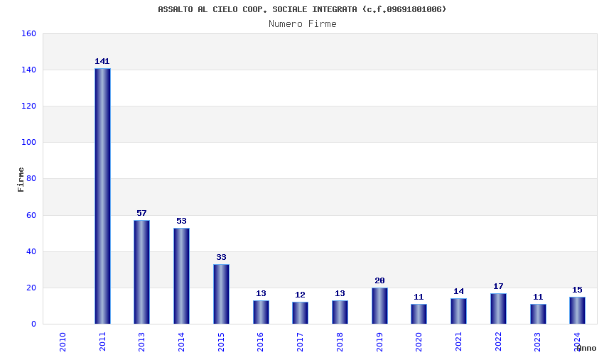 | Anno | Firme | Importi | Media | Naz. | Reg. | Prov. | Comu. |