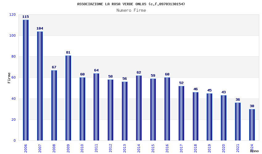 | Anno | Firme | Importi | Media | Naz. | Reg. | Prov. | Comu. |