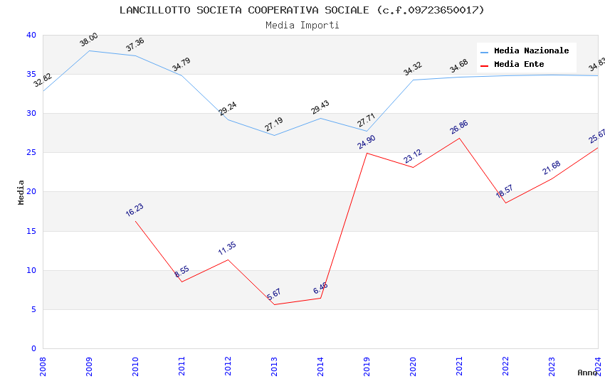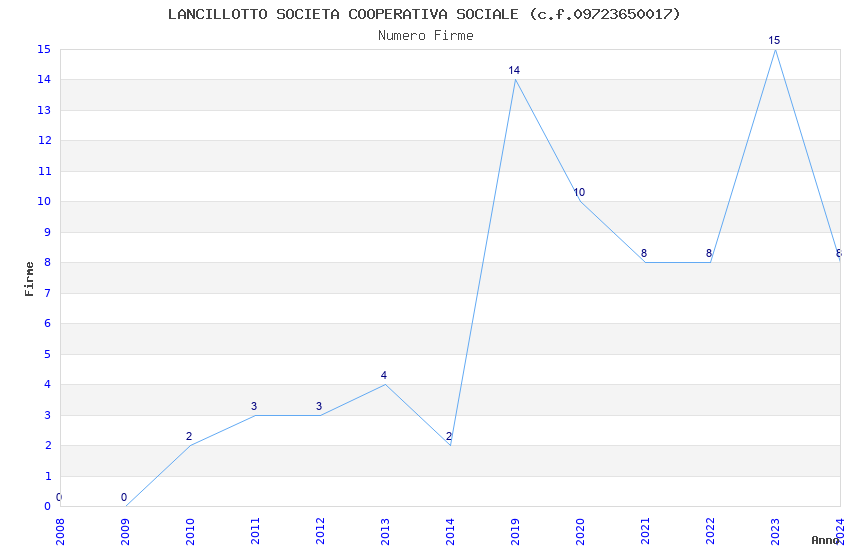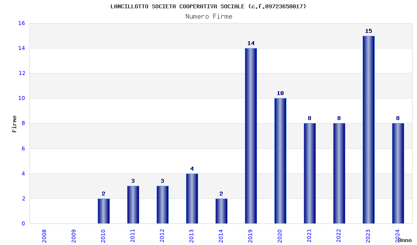 | Anno | Firme | Importi | Media | Naz. | Reg. | Prov. | Comu. |