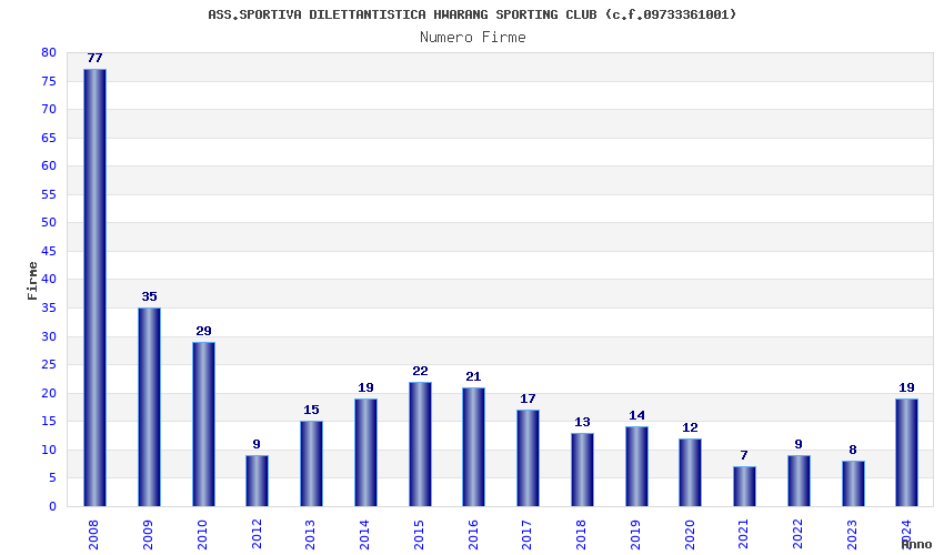 | Anno | Firme | Importi | Media | Naz. | Reg. | Prov. | Comu. |
