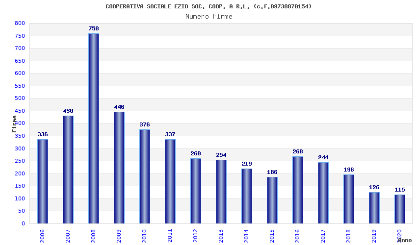 | Anno | Firme | Importi | Media | Naz. | Reg. | Prov. | Comu. |