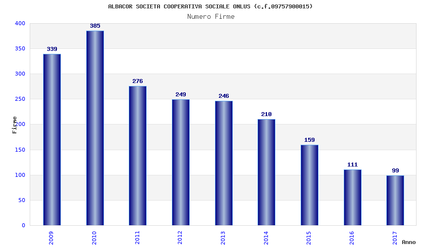 | Anno | Firme | Importi | Media | Naz. | Reg. | Prov. | Comu. |