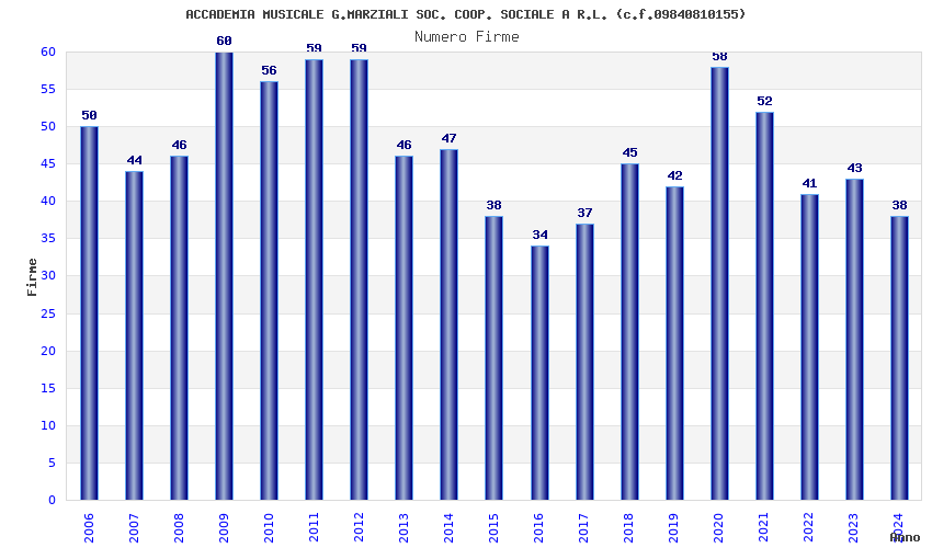 | Anno | Firme | Importi | Media | Naz. | Reg. | Prov. | Comu. |