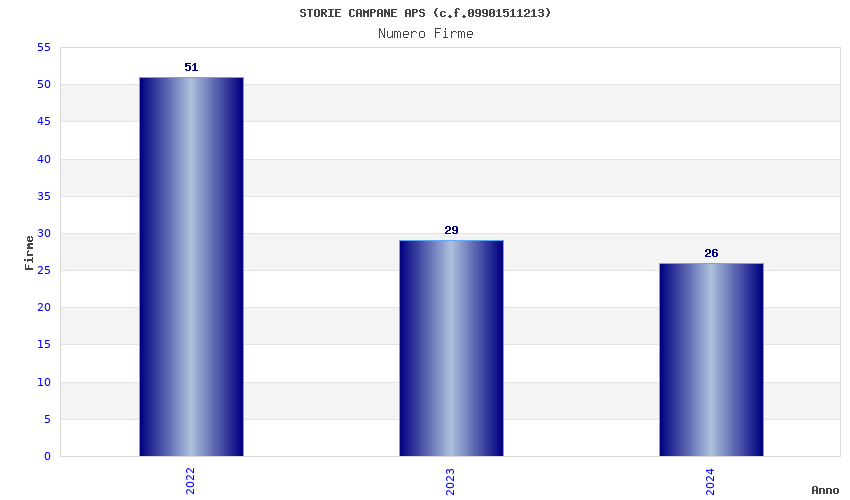 | Anno | Firme | Importi | Media | Naz. | Reg. | Prov. | Comu. |