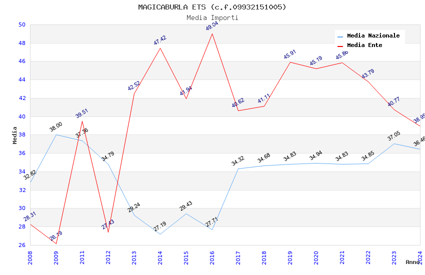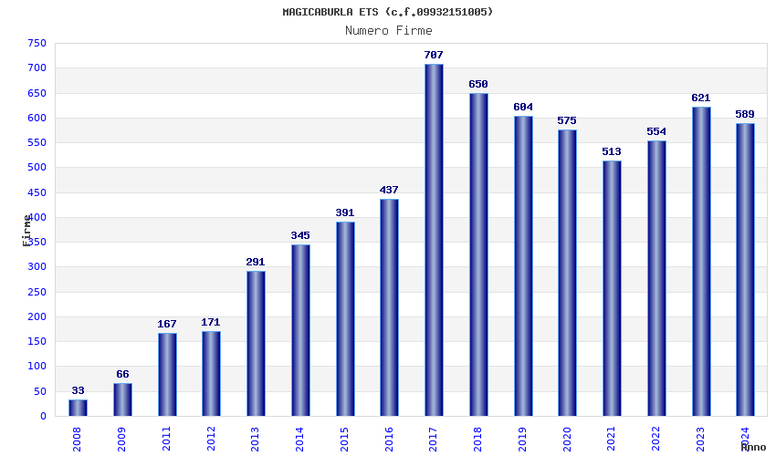 | Anno | Firme | Importi | Media | Naz. | Reg. | Prov. | Comu. |