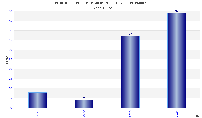 | Anno | Firme | Importi | Media | Naz. | Reg. | Prov. | Comu. |