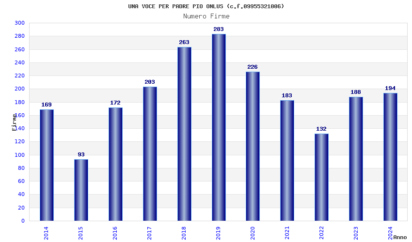 | Anno | Firme | Importi | Media | Naz. | Reg. | Prov. | Comu. |