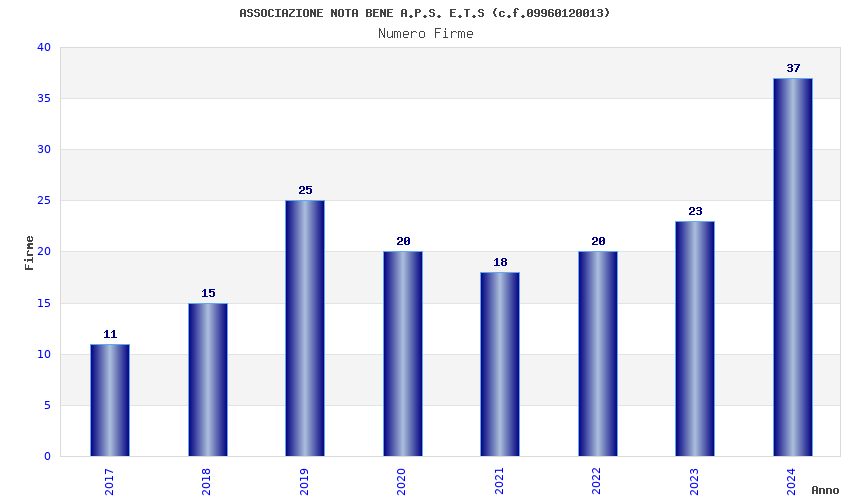 | Anno | Firme | Importi | Media | Naz. | Reg. | Prov. | Comu. |