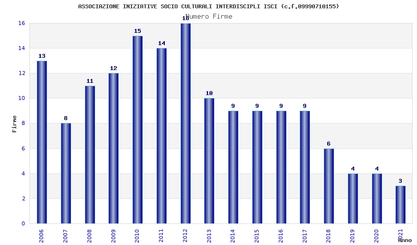 | Anno | Firme | Importi | Media | Naz. | Reg. | Prov. | Comu. |