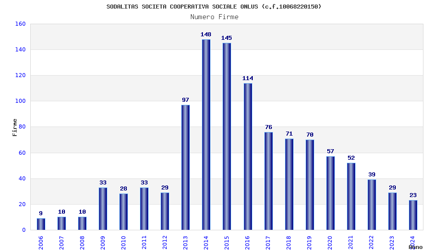 | Anno | Firme | Importi | Media | Naz. | Reg. | Prov. | Comu. |
