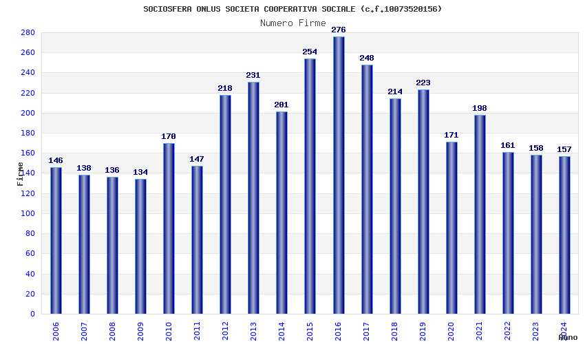 | Anno | Firme | Importi | Media | Naz. | Reg. | Prov. | Comu. |
