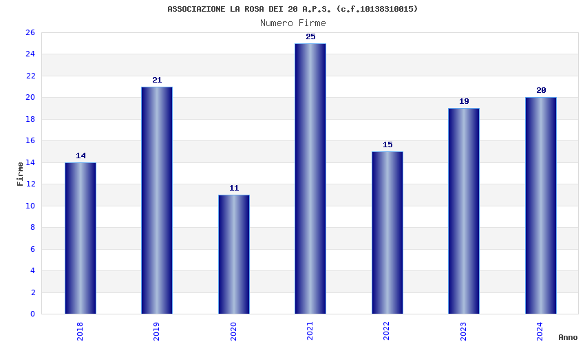 | Anno | Firme | Importi | Media | Naz. | Reg. | Prov. | Comu. |