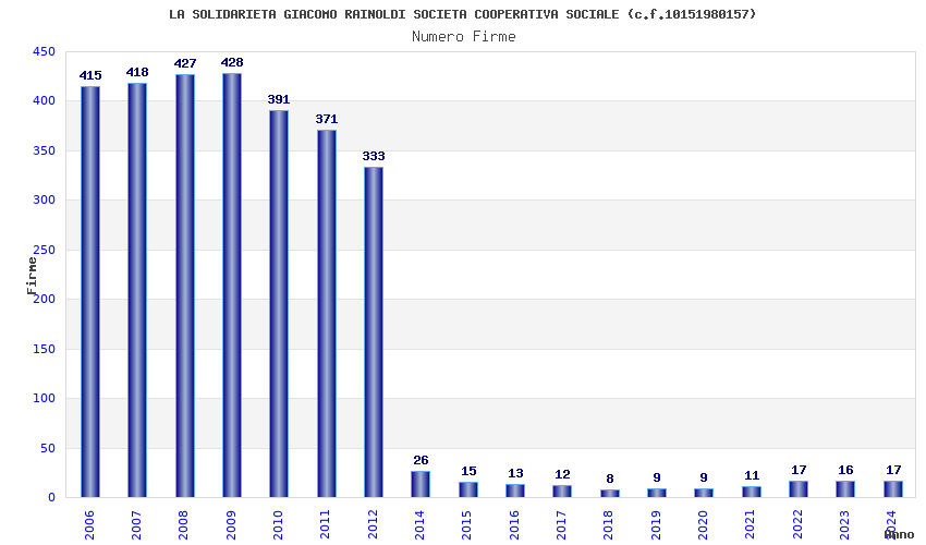 Anno Firme Importi Media Naz. Reg. Prov. Comu.