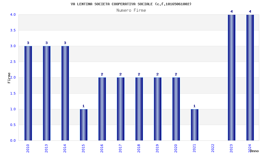 | Anno | Firme | Importi | Media | Naz. | Reg. | Prov. | Comu. |