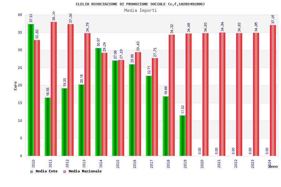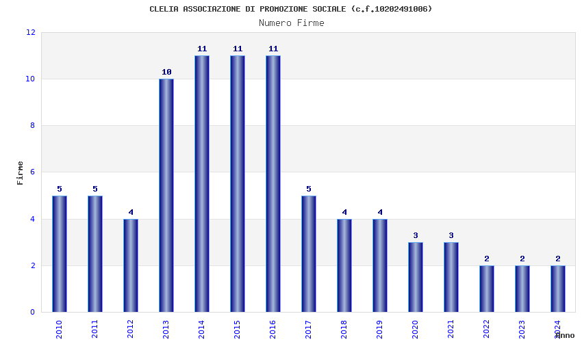 | Anno | Firme | Importi | Media | Naz. | Reg. | Prov. | Comu. |