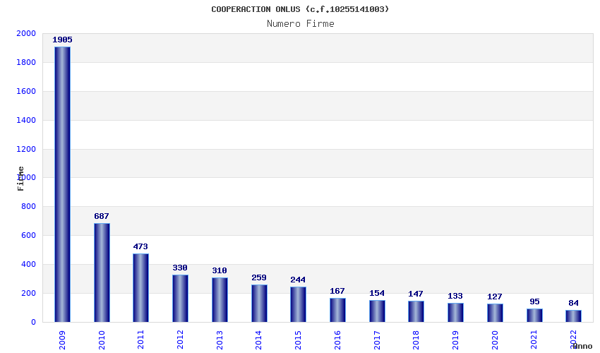 | Anno | Firme | Importi | Media | Naz. | Reg. | Prov. | Comu. |