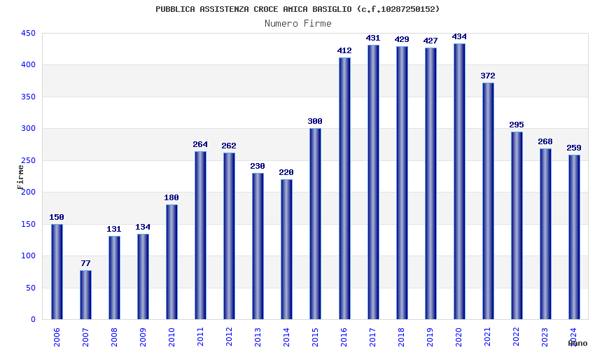 | Anno | Firme | Importi | Media | Naz. | Reg. | Prov. | Comu. |