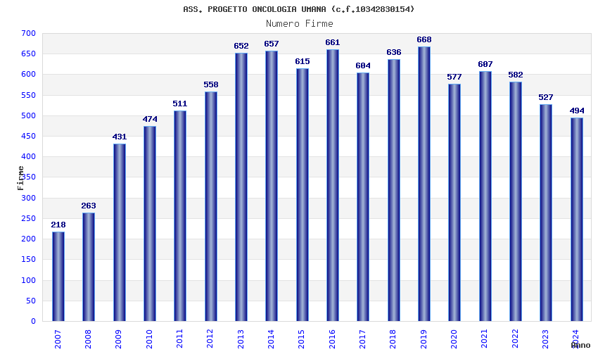 | Anno | Firme | Importi | Media | Naz. | Reg. | Prov. | Comu. |