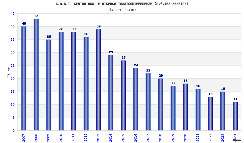 | Anno | Firme | Importi | Media | Naz. | Reg. | Prov. | Comu. |