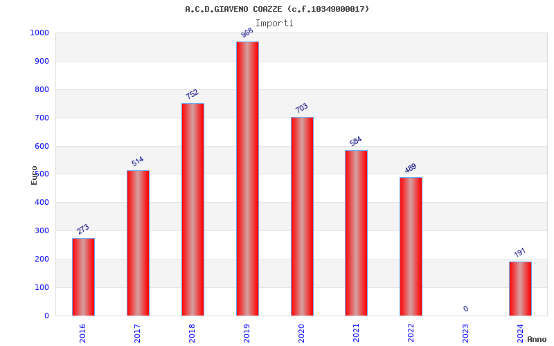 | Anno | Firme | Importi | Media | Naz. | Reg. | Prov. | Comu. |