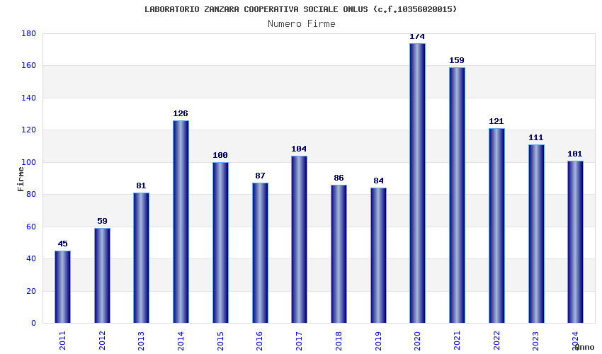 | Anno | Firme | Importi | Media | Naz. | Reg. | Prov. | Comu. |