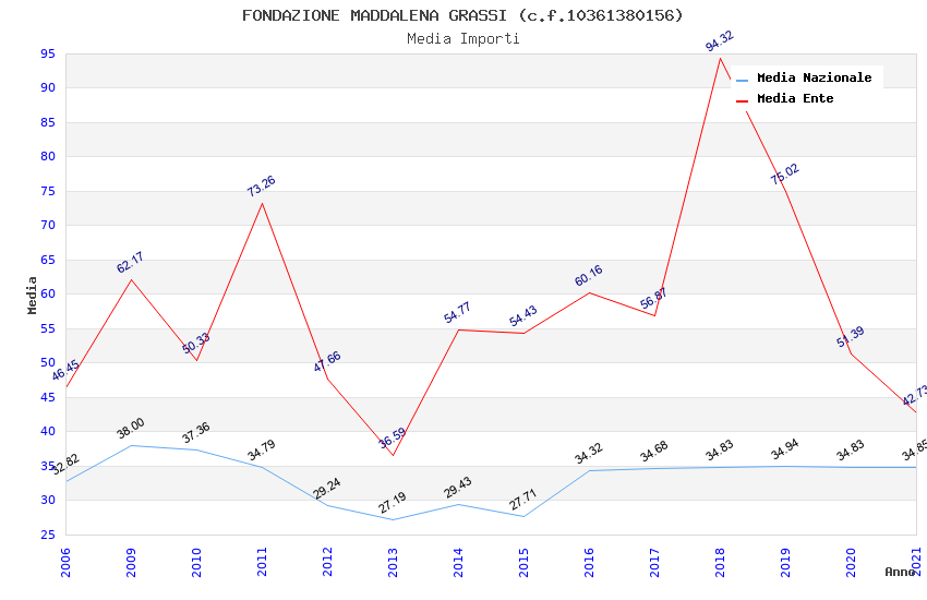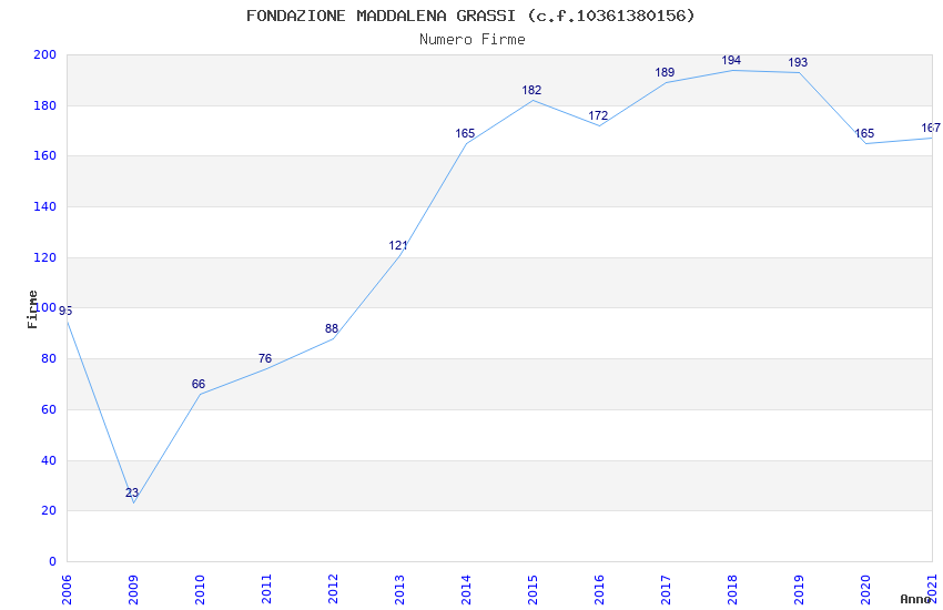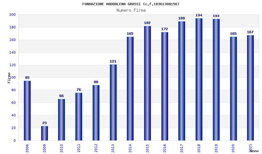 | Anno | Firme | Importi | Media | Naz. | Reg. | Prov. | Comu. |