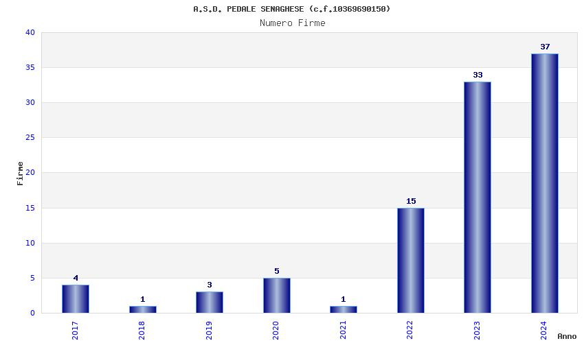 | Anno | Firme | Importi | Media | Naz. | Reg. | Prov. | Comu. |