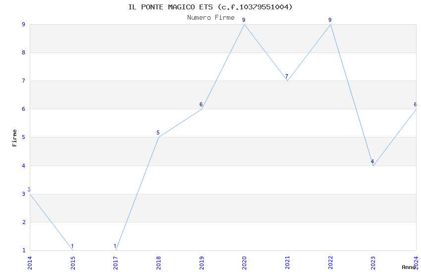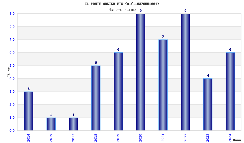 | Anno | Firme | Importi | Media | Naz. | Reg. | Prov. | Comu. |