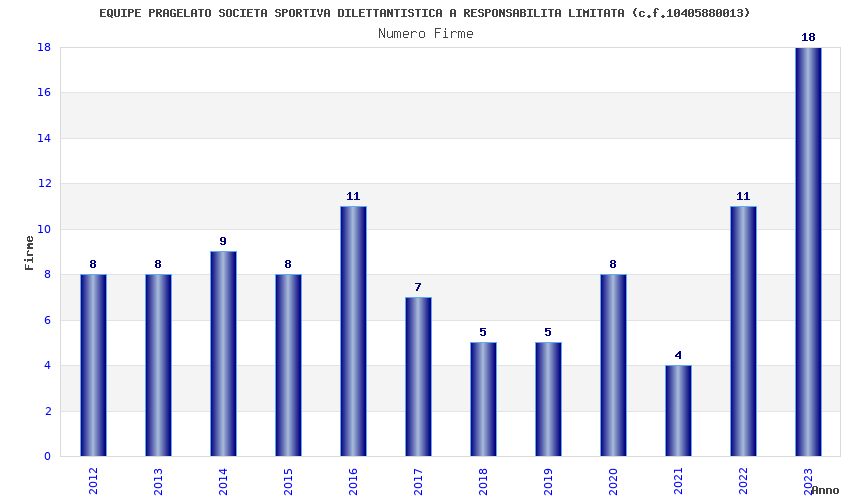 | Anno | Firme | Importi | Media | Naz. | Reg. | Prov. | Comu. |