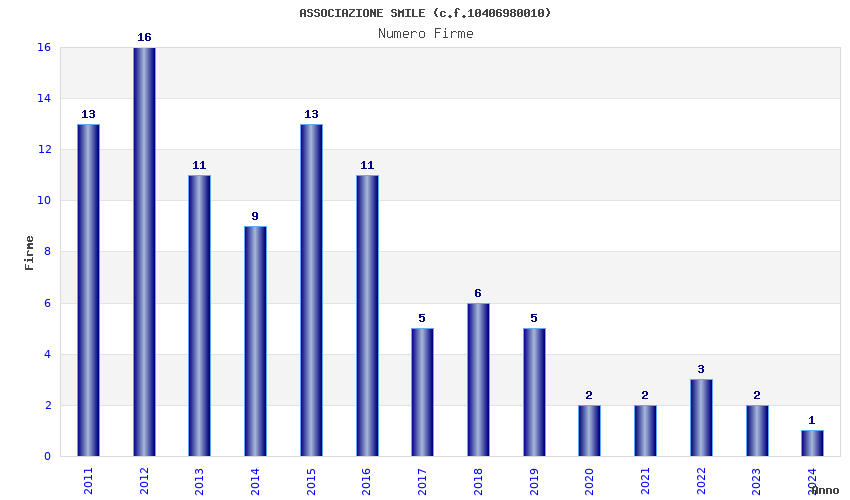 | Anno | Firme | Importi | Media | Naz. | Reg. | Prov. | Comu. |