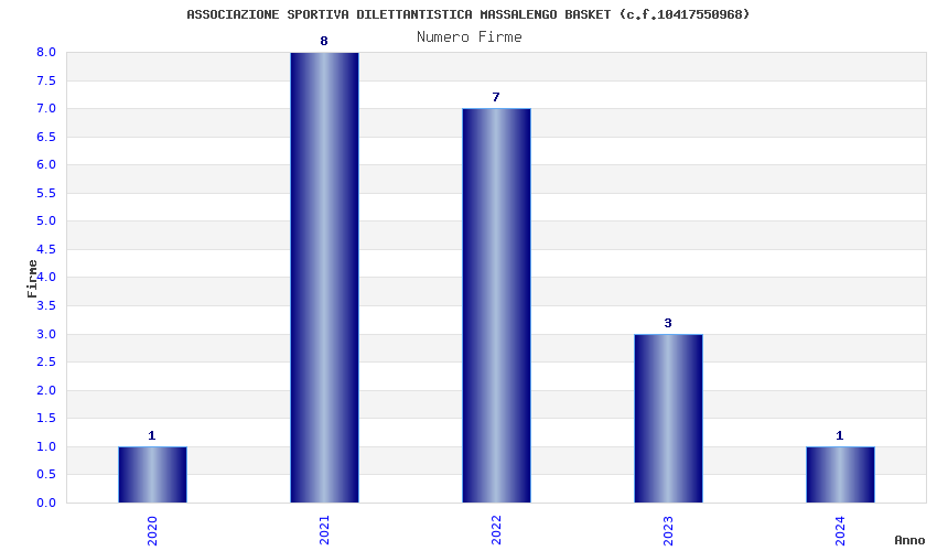 | Anno | Firme | Importi | Media | Naz. | Reg. | Prov. | Comu. |