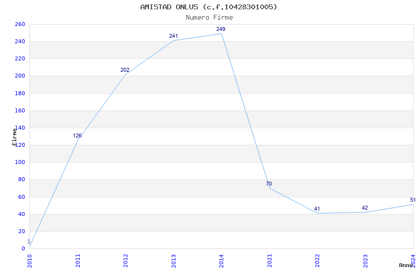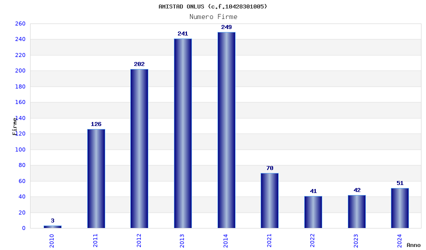 | Anno | Firme | Importi | Media | Naz. | Reg. | Prov. | Comu. |