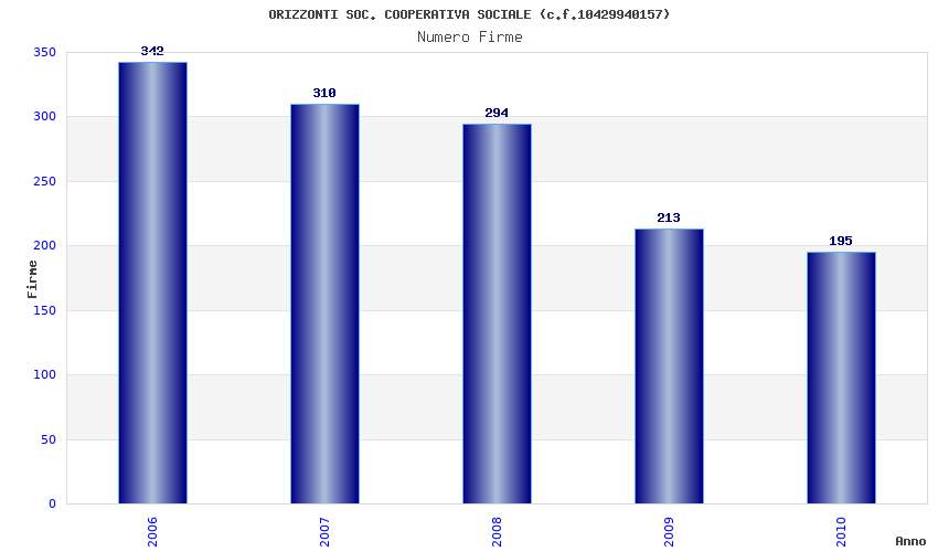 | Anno | Firme | Importi | Media | Naz. | Reg. | Prov. | Comu. |