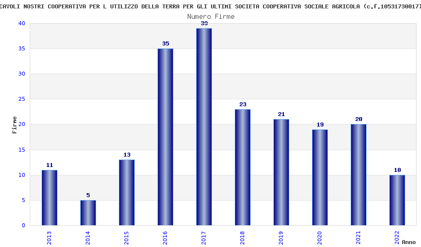 | Anno | Firme | Importi | Media | Naz. | Reg. | Prov. | Comu. |
